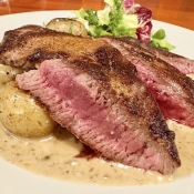Jídelní lístek je pestrý, ale hotovky zde příliš nehledejte. Hostinec staví  především na kvalitním hovězím mase na steaky a čerstvých tradičních jídlech. V nabídce nechybí masová jídla z vnitřností,  zvěřiny, saláty, či zapečené bagety. A vždy zde najdete sladkou tečku na závěr. Například poctivé švestkové knedlíky, které měl rád František Ferdinand d‘Este.