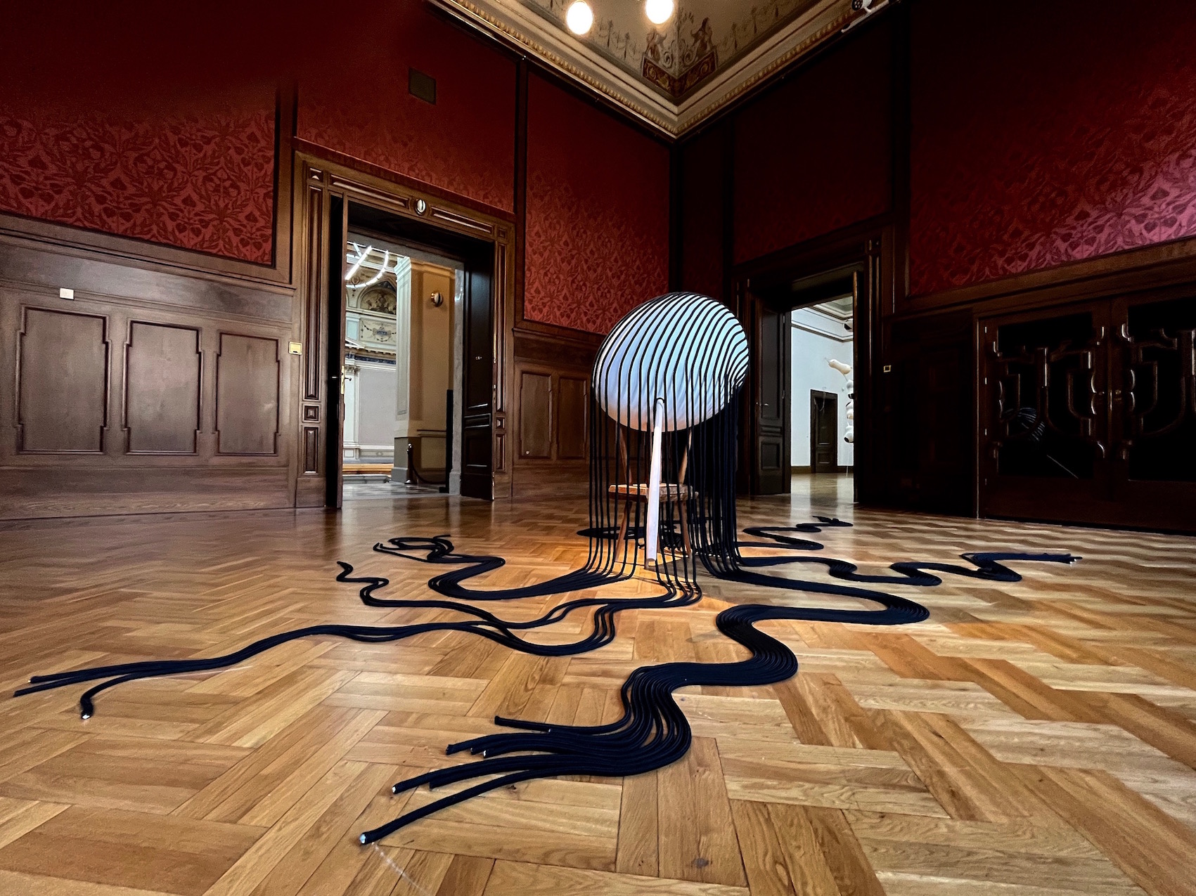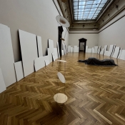 Prostředí výstavy v Galerii Rudolfinum Kateřina Vincourová koncipuje jako krajinu pojímanou formou cesty, která se v průběhu jednotlivých prostor fluidně proměňuje. Do svých prostorových kreseb a instalací integruje vše, co ji zajímá, včetně prostoru, ve kterém vystavuje. V její práci se kontinuálně odráží povaha utopických a dystopických světů fungující jako kritický komentář soudobé společnosti. U těchto světů – stálých a nestálých míst – zkoumá umělkyně jejich možnosti a vlastnosti a skrze sdílení mapy svých příběhů a myšlenek umožňuje kolektivní prožitek a zvědomění. Pro autorku je v tomto konkrétním případě důležité řazení jednotlivých sálů v kruhu a jejich prostupnost oběma směry, kdy začátek je zároveň koncem a naopak. Prezentuje tak cyklickou podstatu všech věcí, nekonečný návrat od konce k začátku, destrukci a znovuzrození.