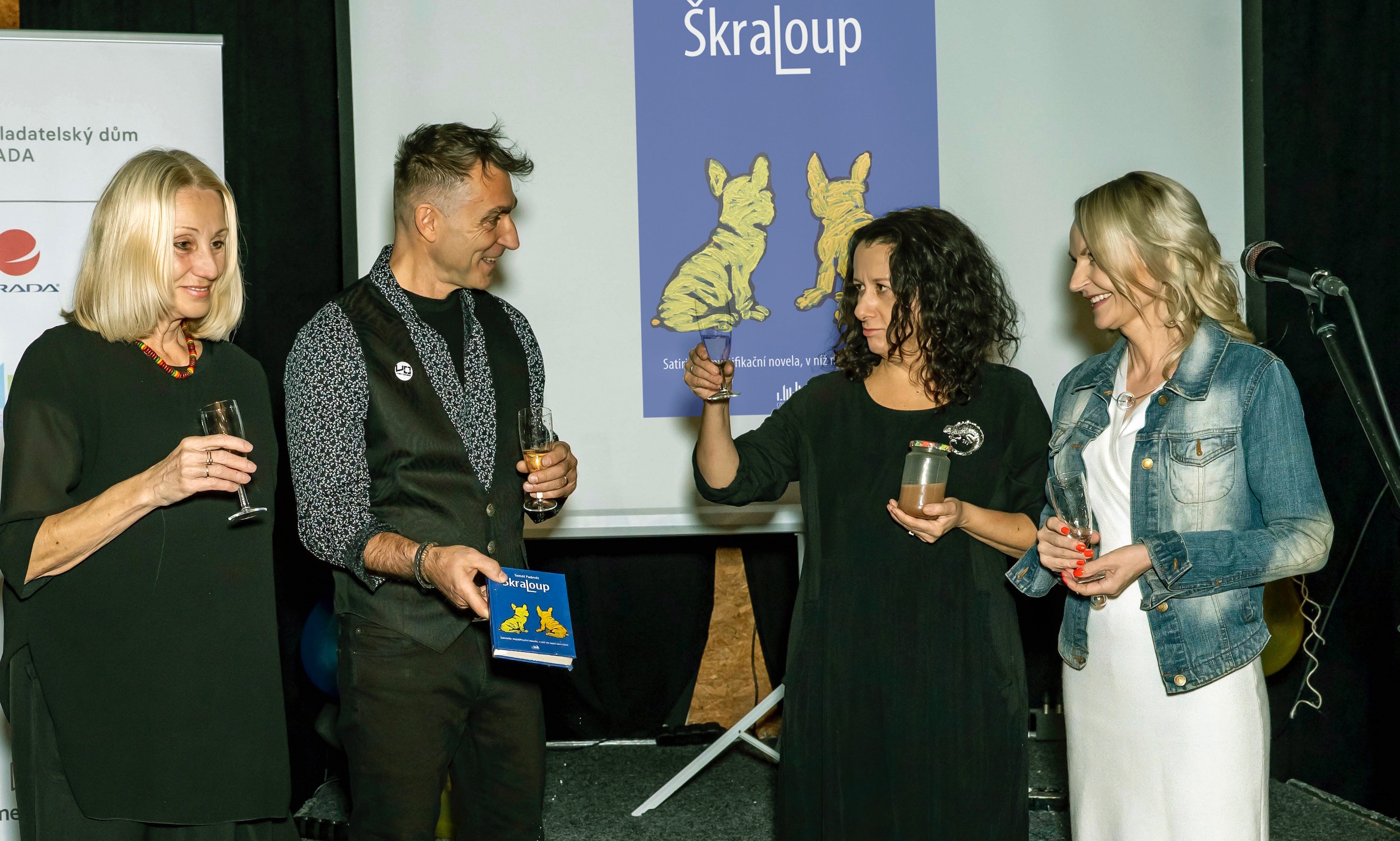 Po minuloročním románu Šest dnů, který nahlédl mimo jiné i hluboko do polyamorních vztahů, se tentokrát věnuje spíše absurdně laděnému příběhu jistého Drahlena. Ne každý má tak divokou představivost jako tenhle šestačtyřicetietý muž. Je poněkud zvláštní, má svá tajemství. Ani jeho zaměstnání nejsou běžná. Prožil několik delších partnerských vztahů, ale nakonec zůstal sám. Jako jediný single v široké rodině, což těžce zvládá. Strádá a touží. Začne hledat vytoužený vztah. O jedné noci se objeví v oblíbeném klubu zvláštní žena. Letmo se setkají. Avšak druhý den si téměř nic nepamatuje. Objeví alespoň její telefonní kontakt. Následující dny si vyměňují mobilní zprávy. Z vlastní nenaplněnosti, začne záhy konstruovat představu o skvělém vztahu. Má správnou intuici? V jeho životě je přece tak málo jednoznačného...Místy surreálná novela, balancuje na hraně grotesky a psychologického příběhu, kde není nic jisté. Nakladatelství Cosmopolis připravilo Škraloup na knižní pulty v podobě milé, útlé knížky, jako stvořené pro vánoční dárek. Úsměvné čtení se snoubí s očekáváním, překvapením i zamyšlením. Kniha byla již také načtena výtečným kladenským hercem Silvesterem Matulou jako audiokniha. Ke stažení elektornicky například na supraphonloine.cz. Škraloup byl slavnostně pokřtěn na lodi Kamina a rovnou třemi kmotrami: režisérkou Olgou Sommerovou, komičkou Ester Kočičkovou, a malířkou, autorkou motivu na obálce knihy, Irenou Křivánkovou. Ester Kočičková pro tuto mimořádnou chvíli uvařila speciální kakao. Křest tedy proběh se dvěma nápoji.