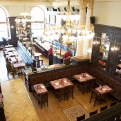 Majitelé navštívili pět největších měst v Belgii. Hledali nápady, fotili detaily, věšáky, šuplíky, židle a nakonec své nápady a zadání předali architektům, kterým se interiér skutečně povedl. Je zde velké množství šuplíků kombinovaných s mosazí , která je typická pro belgické pivnice. U stolů jsou zdobné prvky, ve dřevě jsou nápisy belgických měst. Interiér se podařilo nenásilně přizpůsobit interiéru velkolepého prostředí Národního domu. Velmi dominantní jsou originální hodiny , které vás upoutají hned jak vejdete. V restauraci je i dětský koutek a prostřednictvím kamerového systému se můžete na děti podívat.