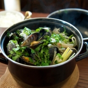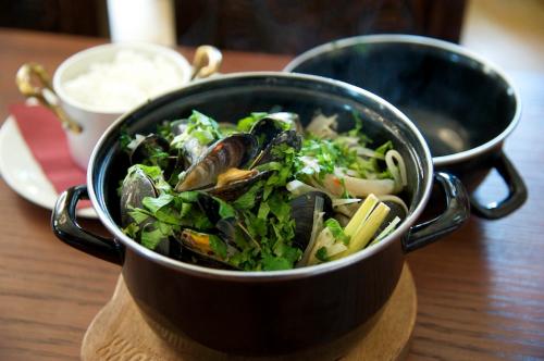 Mušle Tin Tin připravené s červenou curry pastou, zázvorem, arašídovým olejem, kokosovým mlékem a koriandrem (249Kč) jsou pikantní a výbornou přílohou je rýže.