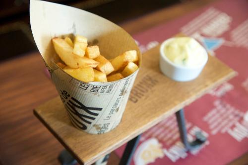 K pivu si můžete uzobávat výborné hranolky, které si zde připravují sami a k nim domácí majonézu – 95 Kč. (hranolky si dávám výjimečně a tady mě zatím nezklamaly).