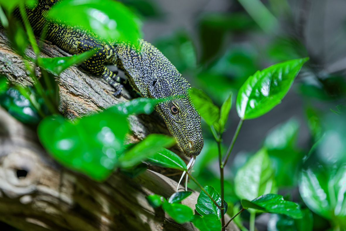 Foto 3: Na kořist číhají varani Salvadoriovi mezi větvemi a zmocňují se jí rychlým výpadem. Loví především menší savce a ptáky, ale nepohrdnou ani mršinami nebo ptačími vejci. Foto Petr Hamerník, Zoo Praha