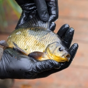 První letošní vypouštění karasů obecných v režii Zoo Praha proběhlo dnes v pražské Michli. Do retenční nádrže Interlov na okraji Kunratického lesa putovalo zhruba 250 malých rybek odchovaných v pražské zoo. Tento u nás kriticky ohrožený druh, který z tuzemské přírody vymizel zejména kvůli ztrátě přirozeného prostředí a konkurenci invazního karase stříbřitého, se navrací do českých vod od roku 2022. V součtu s dnešní akcí jej Zoo Praha spolu s partnery vypustila do dvaceti šesti lokalit, které obývají už desítky tisíc jedinců. Karas obecný byl ještě před několika desítkami let jednou z nejběžnějších ryb v Česku. Na přelomu tisíciletí se ale jeho situace změnila a dnes jde u nás o kriticky ohrožený druh. Příčin je hned několik, zásadní vliv však mají dvě.